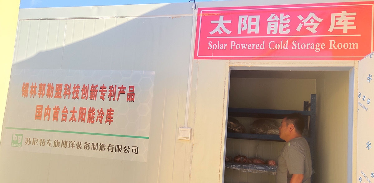 牧民家庭傳統(tǒng)的冷凍儲(chǔ)藏設(shè)備為冰箱或者冰柜,但受限于本身容量較小,對(duì)一些儲(chǔ)藏量需求較大的牧民家庭并不能滿(mǎn)足其需求。我公司開(kāi)發(fā)的太陽(yáng)能冷庫(kù)因具有儲(chǔ)藏容量大、節(jié)能環(huán)保、可方便移動(dòng)的特點(diǎn),可在無(wú)電牧區(qū)方便使用。該太陽(yáng)能冷庫(kù)容積為16m3,通常儲(chǔ)藏溫度設(shè)置在-18℃時(shí)壓縮機(jī)停止工作以節(jié)省電量,當(dāng)內(nèi)部溫度上升到-14℃,壓縮機(jī)開(kāi)始制冷。該太陽(yáng)能冷庫(kù)日耗電約8度,冷庫(kù)采用直流壓縮機(jī)使其更加節(jié)能環(huán)保。